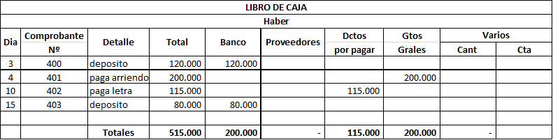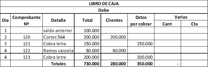 Libro de Caja: Ejercicio resuelto Ingresos: